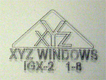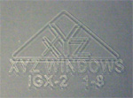 The second photo shows the XYZ Window logo after marking another piece of soda-lime float glass. A black coating was chosen (available in an aerosol spray), applied to the glass and then allowed a few minutes drying time. In the mark file, the Velocity was changed to 16 IPS, Power to 30 watts, and set Spot Marking Style to No so that continuous vector lines were marked instead of discrete spots. Because the coating is bonded to the glass surface without inducing fracturing, the Mark Passes property was set to 1. Using these settings to mark the same 45 mm × 35 mm logo, the high-visibility mark shown was achieved at a power level of 30 watts in a cycle time of only 1.97 seconds.