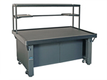 The RG series 3' x 5' breadboard is a lightweight honeycomb structure that superior to granite or steel plate platforms and much easier to assemble and move. The breadboard surface has a durable black matte finish on the surface and has a ¼-20 hole pattern on 1" centers. The instrument rack is a standard 19" rack mount integrated into the workstation fame. The rack is constructed of welded heavy gauge steel for stability and ruggedness.