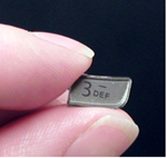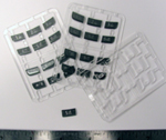 In this application test, 1.21-mm thick (0.048") keypad buttons were cleanly degated using a SYNRAD sealed CO2 laser and FH Series marking head for beam delivery. The FH head was equipped with a 200 mm lens that creates a 290-micron (0.011") diameter spot with a 5 mm (0.196") depth of focus. Using the Synrad WinMark Pro laser marking software, a circle was drawn matching the radius of the keypad buttons and then modified Arc Start and Arc End properties to create an arc of the correct length and orientation to trim each button away from the moulded runner/gate assembly.