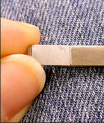 For this welding trial, the requirement was to fillet weld a 0.15-mm (0.006") thick steel cover to a much thicker steel substrate to create an electrical contact. The beam delivery set-up consisted of a 63.5 mm (2.5") positive meniscus lens, which provides a 100-micron (0.004") spot size with a 1.8 mm (0.07") depth of focus. Argon shield gas, at a flow rate of 3.9 cubic feet per minute (CFM), was adjusted to flow over the processing area to prevent the molten weld pool from reacting with the surrounding atmosphere. Each weld bead measures 8.25 mm (0.325") in length and was completed in approximately 1.3 seconds using 200 watts of power at a velocity of 15 inches per minute.