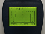 The cursor facility enables users to select any number of points on single or multiple waveforms and determine the energy under the curve. Complex and irregular shapes can be selected to measure energy, power or time. Consequently, the ADM 1000 can measure peak power, average power as well as energy. This is an ideal tool for use in development of laser or high power LED systems. It is portable, powered by a rechargeable 4.8V NiMH battery lasting up to 7 hours.