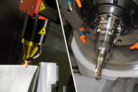 Hybrid Manufacturing Technologies has developed a laser cladding system for use inside CNC milling machines. The combined “hybrid” machine enables metal deposition and subsequent finishing by milling in situ. After 5 years in development, the system debuted at the EMO Exhibition in Hannover late last year and was awarded 1st prize for multi-functional machines.