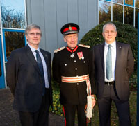 Image: with the Lord Lieutenant are Mike Osborne (left) and Gideon Foster-Turner (right)
