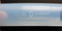 Now, 355 nm, diode-pumped, solid-state lasers, such as the Coherent MATRIX 355, have emerged as an attractive alternative for both pill and medical device marking. The advantage of this laser is that its ultraviolet output is absorbed strongly by most materials, and it produces a cold, photochemical (rather than photothermal) interaction with any fillers or pigments within the material. The result is a smooth, highly legible mark within the bulk material, rather than at the surface.