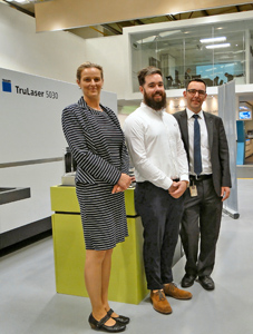Image: TRUMPF MD Annette Doyle, Karl Willett from Lasered Components and Martin Cuthbert TRUMPF sales engineer.