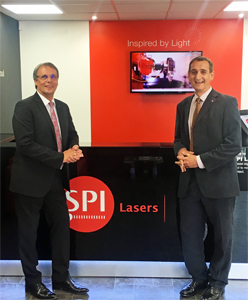 Image: Christian Schmitz (left - TRUMPF CEO LT) & Mark Greenwood (CEO SPI Lasers) inside the new facilities reception area.