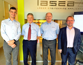 Image: L-R Bruno Courtinade, Sales Network Manager, LASEA; Arthur Turner, Rainford Precision; Miles Evans, Rainford Precision; Axel Kupisiewicz, CEO, LASEA