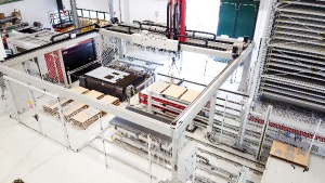 In the photos you can see one of the most advanced installations in Europe in terms of automation from raw material to finished kits. This system is available right now in the UK market to be tailored to existing laser cutting and tower systems or supplied as a complete turnkey solution for the automated job shop.