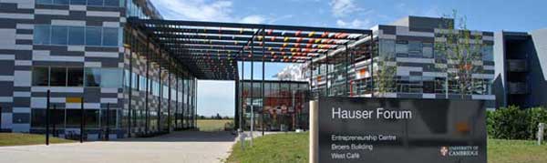 Leave the M11 at junction 13, take the A1303 exit to Cambridge/Bedford/A428. Turn right at Madingley Rd/A1303 (signs for Cambridge). Turn right onto J.J. Thomson Ave. The Hauser Forum is located at the junction of J.J. Thomson Ave. and Charles Babbage Road.