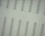 Holes with diameters between 30-100μm are produced by percussion drilling. Larger holes require a relative movement between laser beam and wafer and in this instance these larger holes are produced by a trepanning process. The extremely high removal rates seen in this process are also achieved using the Rofin Q-switched StarDisc Laser which has very high TEM00 average power and an ideal range of pulse widths. The StarDisc Laser can achieve processing speeds of up to 5,000 holes/second for percussion drilling and up to 25 holes per second for trepanning.