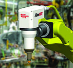 Engineered for 3-dimensional robotic cutting with a fiber-coupled laser, FiberCut is a compact, low moving mass head that minimizes inertia transfer to the robot support arm. All connections to the head enter at a right angle, including the fiber, providing tight access to parts, easy cable routing and stress reduction on the input fiber. The FiberCut system consists of the cutting head, fiber collimator, linear drive with position measuring and an internal, low-noise height sense system that is insensitive to cutting plasma or piercing debris.