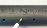 The requirement for this application was to mark manufacturing data on 2-inch nominal O.D. UV resistant polypropylene pipe. The marking setup consisted of a Synrad Firestar t80 laser, FH Flyer marking head, and Synrad’s WinMark Pro laser marking software. Because of the large mark required, a Flyer head was fitted with a 370 mm lens that provides a 540-micron (0.021") diameter spot over the extents of a mark field measuring 241 mm by 297 mm (9.5" x 11.7").