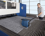 The TruTool TSC100 automatically adapts to different slag thicknesses and the operator can move the tool up to the pallet frame. It is easy to handle and comfortably operated by one person. And on flatbed laser machines with a pallet changer, cleaning can be in parallel to production.