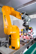 The concept developed by ES Technology for this application uses a combination of technologies to provide the highest levels of flexibility. Components are presented to the system in trays, delivered on a conveyor system, and a six-axis robot is used to pick the items individually from the tray and place them to a loading station on a 6 position rotary indexing table.
