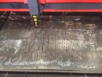 Surrounding the Spire Memorial will be 120 plates on the curved memorial walls, which are to carry the names of the 25,611 men who flew and died from airfields around Lincoln. In total there were 55,573 lives lost from Bomber Command, with 28% of them coming from countries outside the UK. The plates are to be made from “CorTen A”, a type of steel designed to weather over time and provide a rusted appearance. Each plate is 4 mm thick and will take around 6 hours of laser cutting time on the machines at Micrometric. Laser cutting is a precise method of cutting through metals and other materials with low heat input and a fine cutting line, using a machine capable of handling large sheet sizes and cutting through over 12 mm thickness of material.