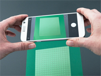 A paper test sheet is laser marked and then overlaid with a transparent, grid-structured glass master. The marked sheet with overlaid master is then photographed, either simply via a smartphone or with a flatbed scanner for even more precise results. As soon as the image is transferred to the calibration software, a custom correction file can be calculated from it. When laser processing again with this correction file, accuracy improves to 50 μm when a smartphone photo was used, or 30 μm for a flatbed scanner image. The entire procedure of optimising process results takes only a few minutes.