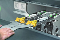 Called Xpert 80, it joins the smaller 40-tonne, one-metre Xpert 40 model that can be similarly repositioned and has proved popular since its introduction at the 2014 EuroBlech exhibition in Hannover. Both machines boost productivity by avoiding having to use a large, slower press brake to bend a small component. Output can be increased further by relocating the machines next to a laser cutting cell, another press brake or other machine tool.