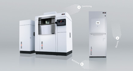 EOS, the technology supplier of industrial 3D printing of metals and polymers, introduces the material handling solution IPCM M pro for its well-established EOS M 290 system. For this purpose, the EOS M 290 – a highly productive system for the Additive Manufacturing (AM) of metal components – is equipped with a special process chamber door with coupling points to connect with the IPCM M pro and material containers. The combination of system and periphery enables users to convey material easy, fast and safe out of the system, sieve it and refill it into the system – thus, simplifying industrial 3D printing as an established manufacturing method overall.