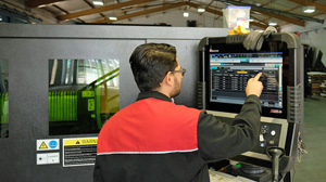 Another machine taking pride of place at Glenmore Hane is the AMADA HG-1003ATC (Automatic Tool Change) press brake, which can load even the most complex tool layout within 3 minutes.