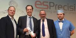 In May 2019 ES Precision attended the Medilink UK Healthcare Business Awards and won the Engineering Award for the ingenuity of their CO2 laser perforating process. This process contributes to a better, more comfortable experience for amputees when wearing artificial limbs. Judges identified an impressive use of a specialist manufacturing technique to improve patient comfort and recognised that the company has developed an efficient and effective way of manufacturing prosthetic silicone inserts by laser drilling.