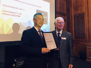 Professor Lin Li was also awarded the prestigious 2018 Donald Julius Groen Prize from the Institution of Mechanical Engineers (IMechE) on 16 October 2019 in London, for his “outstanding contributions to research and education in engineering innovations in mechatronics and manufacturing, and in particular for his leadership in laser based additive manufacturing”. The prize was presented to Professor Li by President of IMechE, Professor Joe McGeough. The Institution of Mechanical Engineers was established in 1847 and now has 120,000 members in 140 countries. The prize was nominated by Division of Mechatronics, Informatics and Control Group Board of IMechE.