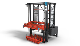 Thanks to its compact, vertical design, the available floor space is used as efficiently as possible. It automates the workflow and permits lightly manned production.